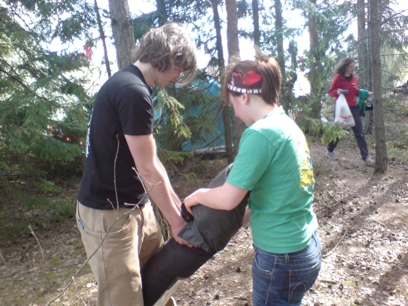 Jostein og Hilde pakker telt