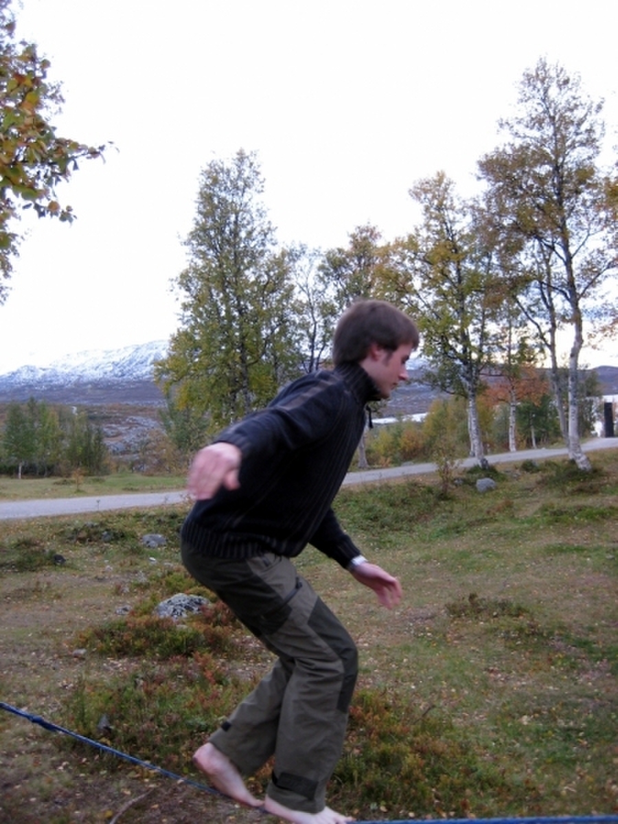 Fredrik benytter seg av den velkjent gamlemannstilen for å komme seg over lina.